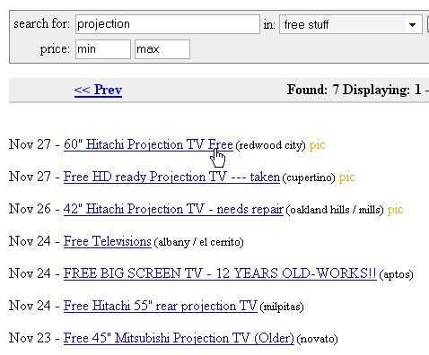 1. Craigslist! Ir a la sección libre en su comunidad local de Craigslist, y probablemente encontrarás decenas de masiva, generalmente rotos proyección TV siendo entregado. Dice Billy tiene una TV de hace unos 10 años, y cuando se rompe, Billy decide actualizar a una nueva tecnología. Televisores de pantalla grande pesan generalmente 200-400 libras, así que Billy quiere es alguien para hacerla desaparecer. Si tienes un camión y al menos un amigo fuerte, esto es una buena opción sobre todo si no te gusta la opción 2.