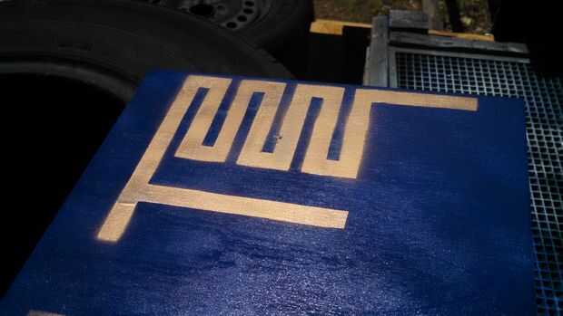 usando cinta de doble cara, fije el corte sobre su tablero principal y pintura con color oro...