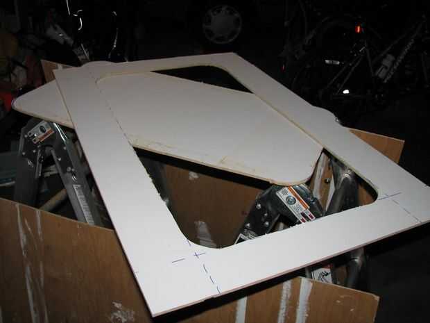 Cortar la ventana de panel frontal y el orificio de la hoja de cama y plexiglás del pegamento en la parte posterior. Fije los pernos de polea pila y apriete. Estire la sábana sobre la placa de soporte. Corte agujeros en la hoja de cama donde están los puestos de mando.