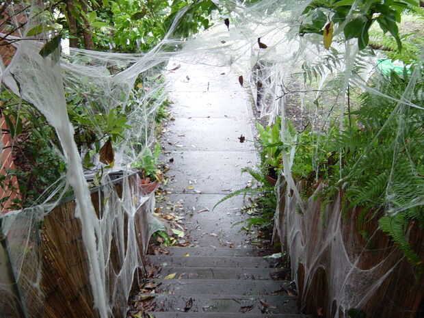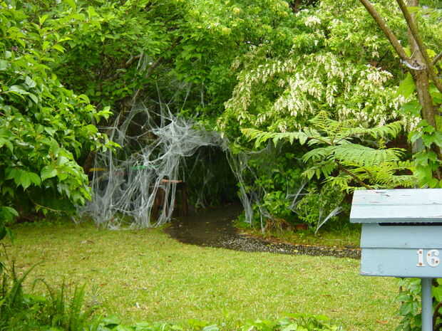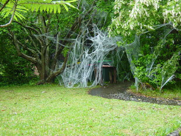 "La arquitectura de redes está diseñada para atraer a su presa, pero proporcionando el ambiente perfecto de emboscada para la araña. El abultado saco huevo dentro, indica que es una hembra con crías. "