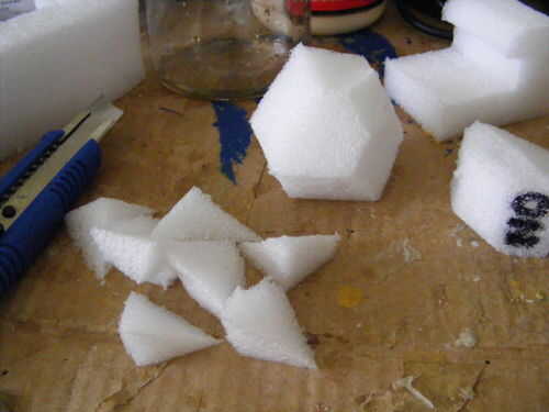 Pero... madera flota pero tiene que ser sellada para que sea no impermeable, trozos de plástico o lámina de plástico para construir somethinig, embalaje de la espuma era lo mejor. Podría intentar averiguar cómo tallar un icosaedro...
