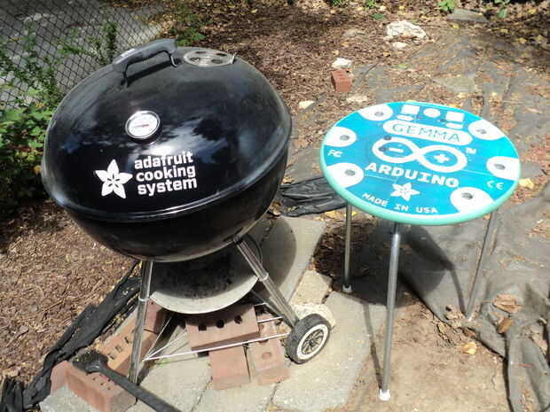 Ellos están siempre sirviendo algo calientes en Adafruit. Hacer esta mesa gigante GEMMA de Arduino para utilizar como una plataforma para los varios propósitos. Necesitaba una mesa pequeña utilidad junto a mi parrilla, así que hice esto. Disfrutar de té o capuccino al aire libre en el aire fresco con Totoro bajo el árbol grande.