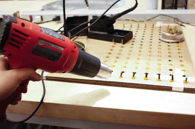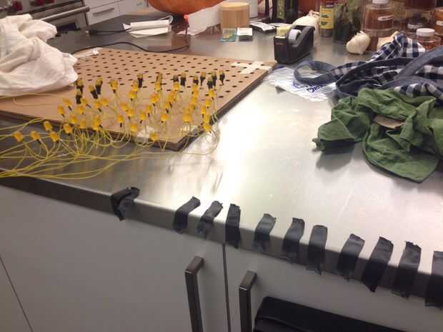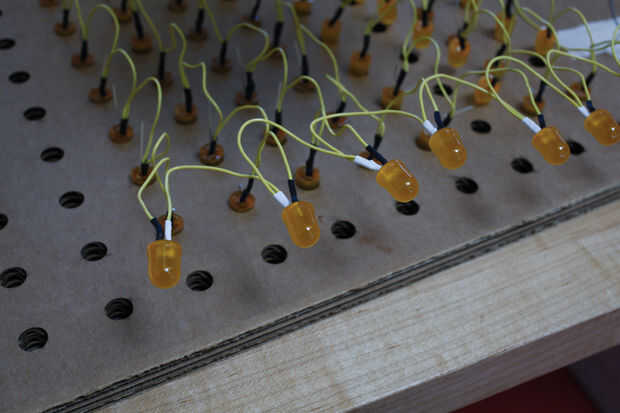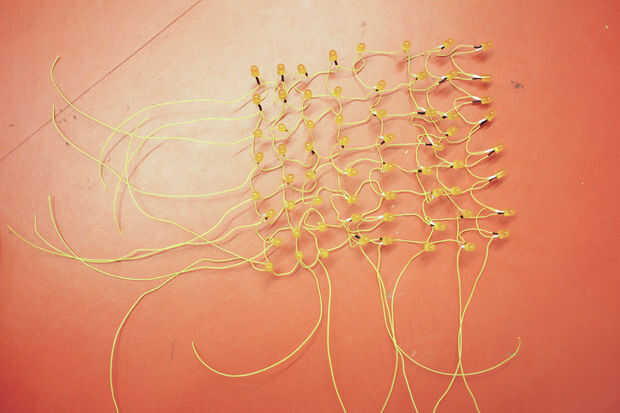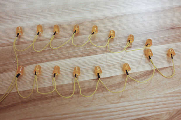 Encogimiento del calor de cada cruce de hilos a plomo de LED, como usted no quiere cualquier humedad en el circuito. Calor shrunked (que es una palabra correcta?) cada LED y entonces envuelto en cinta aislante.