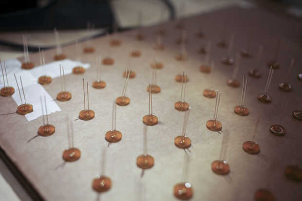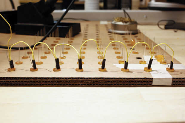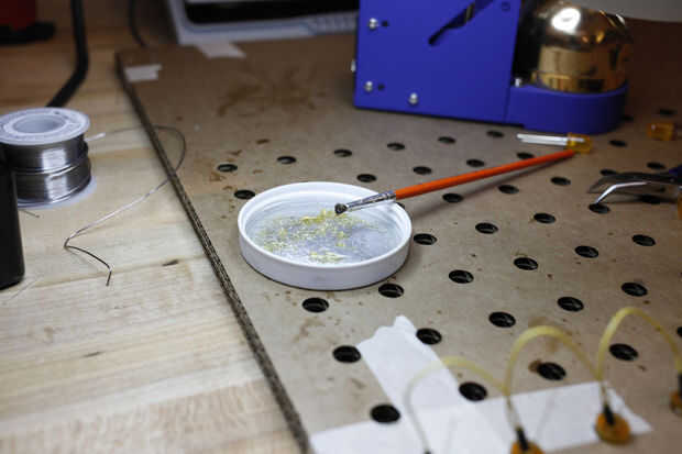 Es útil usar flujo a las uniones del alambre para soldar correctamente entre sí. Utilicé un pincel junky para recubrir los cables como me de soldadura. También hizo cientos de Jumpwires con mi plantilla Jumpwire.