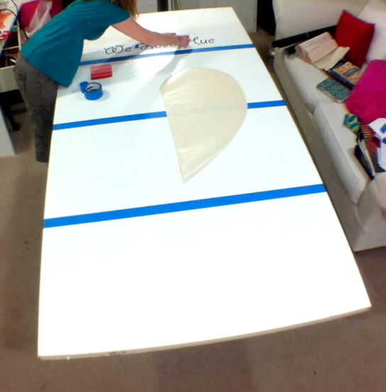 • Marque a continuación la espuma en el borde en cada marca de 24", esta es la línea de centro para su cinta de pintores que le dará un borde blanco entre los colores de la viruta de la pintura.
