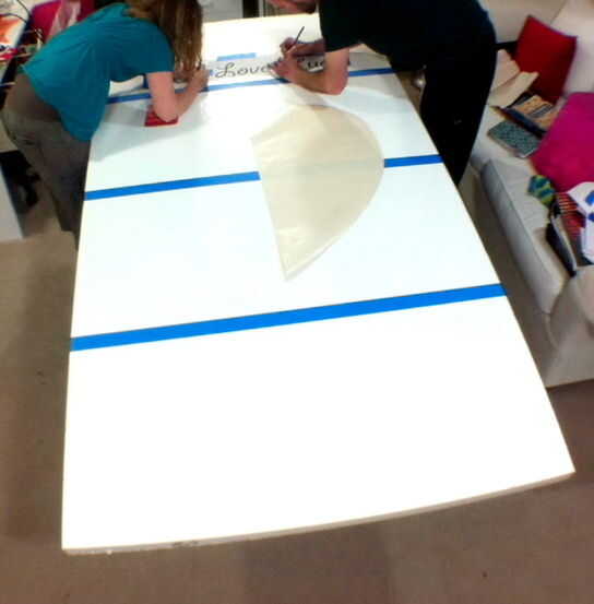 • Tome un punto medio bolígrafo o un lápiz opaco y repasar las letras por lo que deja una muesca en la espuma que se puede seguir más adelante con un cepillo.