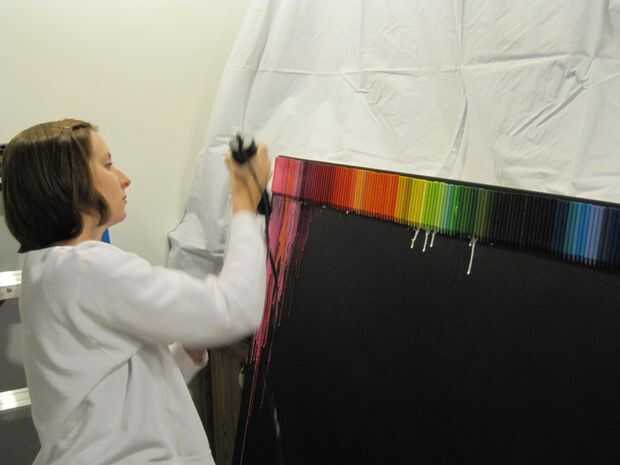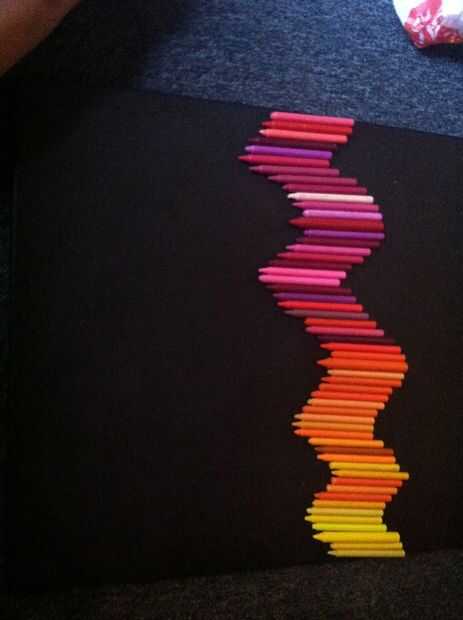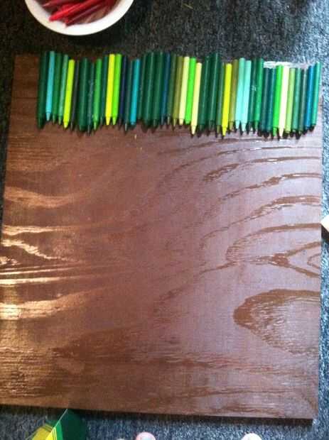 Primera línea de sus lápices de colores en el orden en que desea pegar. No quiero ser luchando alrededor para encontrar el color correcto, mientras que el pegamento ya está en la lona.