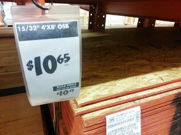 Entre la hoja de tablero de OSB, 10 postes de 2 x 3 y el hardware, mi factura total llegó a cerca de $36. Ya podría tener algunos de los tornillos o clavos.