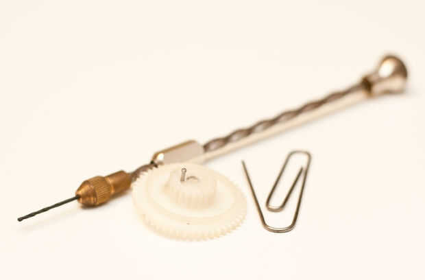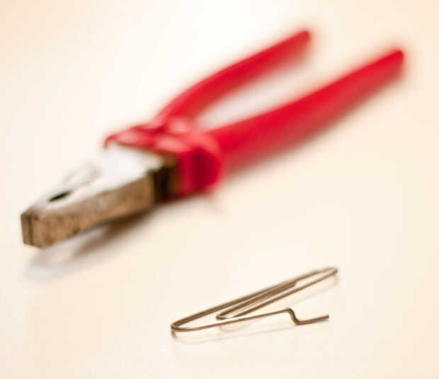 También necesitamos un acero clip grande, que es bastante suave y curva, con la ayuda de los alicates de la curva dos veces a 90°. El propósito es hacerlo llegar a la parte posterior de la uña existente, y superar en altura, como veremos en las siguiente imágenes. Después de doblar el clip de corta a la longitud del nuevo agujero.