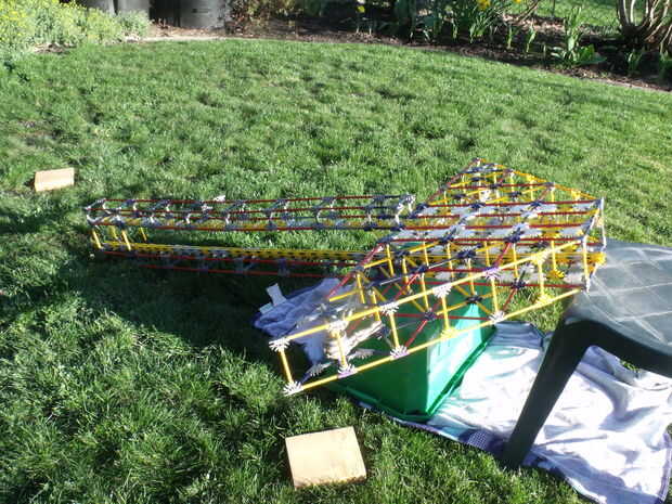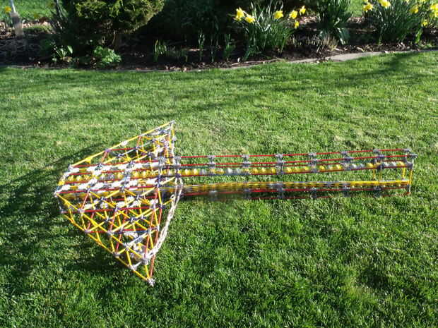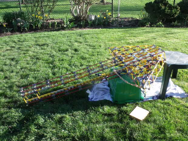 Esta ballesta mide 63 pulgadas (5 1/4 pies) de largo y 45 pulgadas de ancho (aproximadamente 3 1/2 pies) en la parte más ancha (la cabeza). Hasta ahora dispara aproximadamente 20 pies lejos pero se hacer algunas modificaciones para que dispara más lejos.