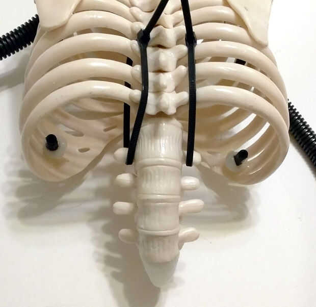 Materiales:Globos x 3Bolsas de plástico x 3Cinta de enmascararExpansión de espumaPantimediasTuberia de riegoRiego se une - ángulo recto x 18, x 1 Cruz, en forma de T-x 2Palillo del resplandor x 2Pelotita de ping pong x 1Bridas x 4Envase de la medicin