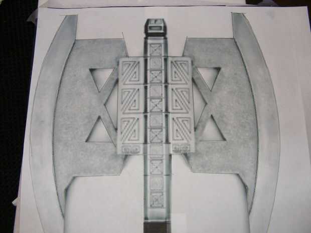 Encontré una foto plana en el hacha utilizada en la película a través de Google, lo recorta y voló hasta el tamaño que quería. Imprimí la foto y utiliza para trazar la forma de la hoja del hacha en espuma de 10mm ampliado (creo que esto es similar a Sintra, pero encontré en el pasillo de la manía bajo el nombre de Cellfoam 88).