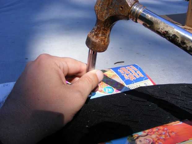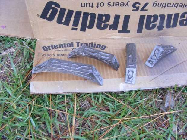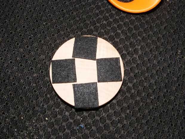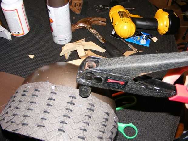 Las aletas y la parte inferior del disco fueron pintados con pintura de aerosol de bronce martillado y deja secar. Se perforaron agujeros en el casco debajo de donde se sentarían las aletas, para proporcionar una conexión mecánica para el pegamento que pudiera sostener las piezas en.