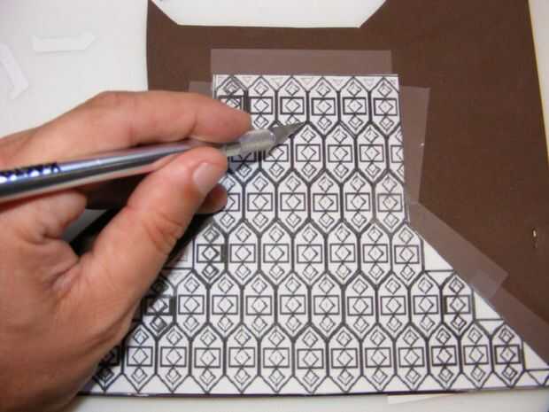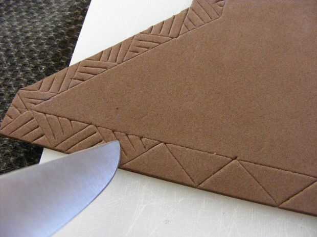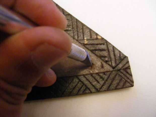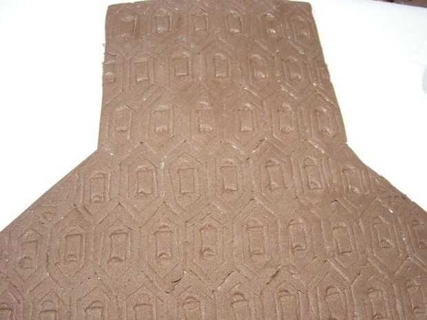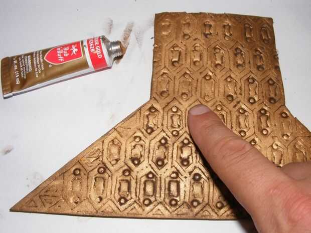 Las escalas fueron luego planchar para fijar las impresiones en la espuma, y cada pieza era dorado con Rub & Buff.