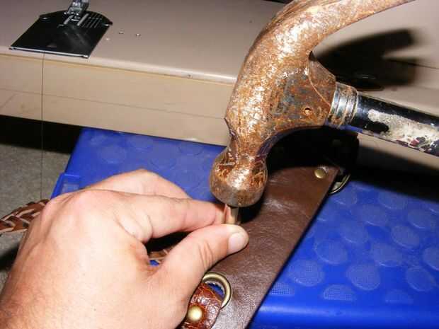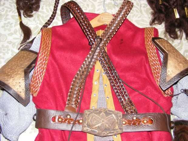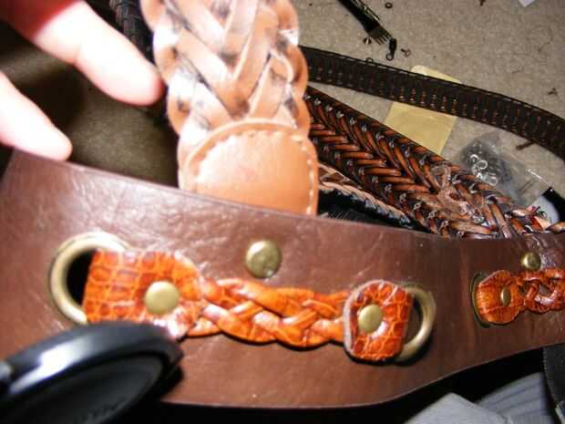 Tomé dos más (razonablemente coincidente) trenzadas correas de buena voluntad y cruzó sobre sus hombros a las bandoleras. He marcado el cinturón y las bandoleras donde tendría que conectar uno al otro y perfora orificios con un punzón de cuero. Los cinturones fueron Unidos con remaches de la tapa.