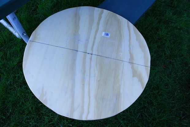 5. con la sierra caladora, cortar el círculo recién extraído de la madera contrachapada.
