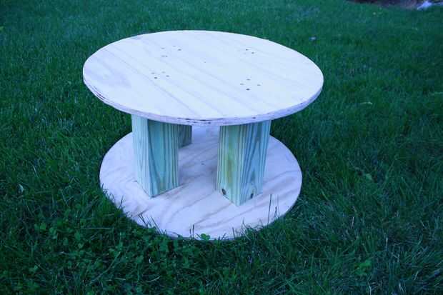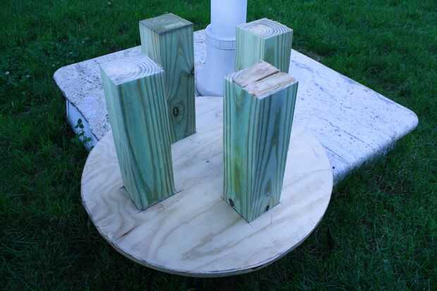 3. usando sus 3" tornillos, fije las patas a la base. Usé 4 tornillos y pata.