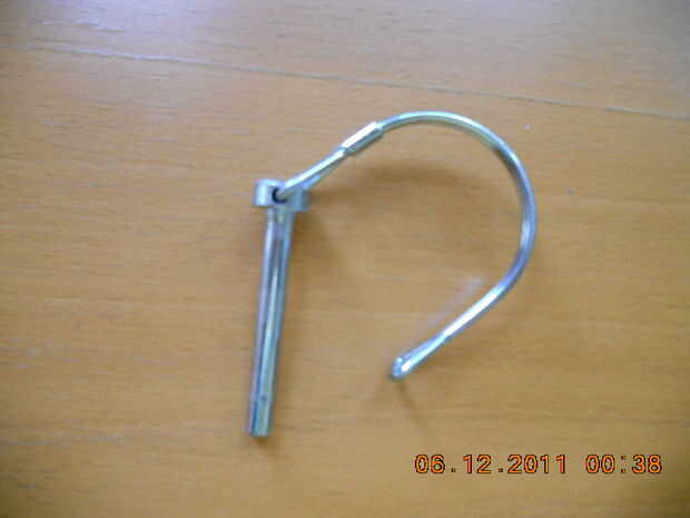 3. Coloque las mitades de aro de 2 hula unos sobre otros en la configuración final y perfore un agujero a través de las 2 mitades en el centro. Las 2 partes luego se cubrió con el pasador de bloqueo.