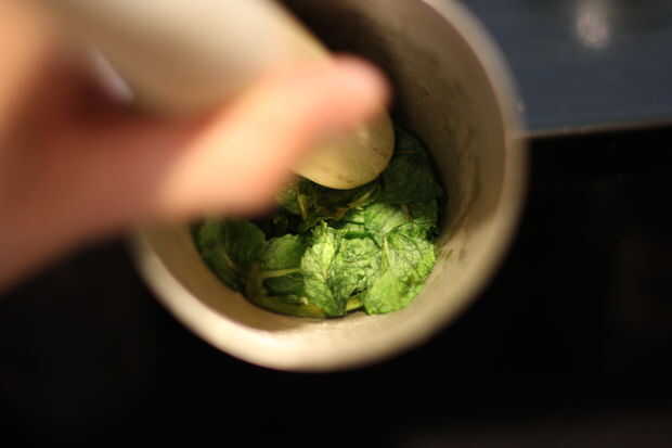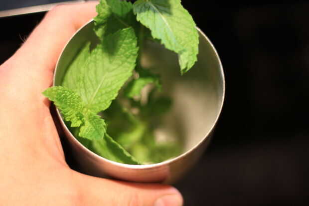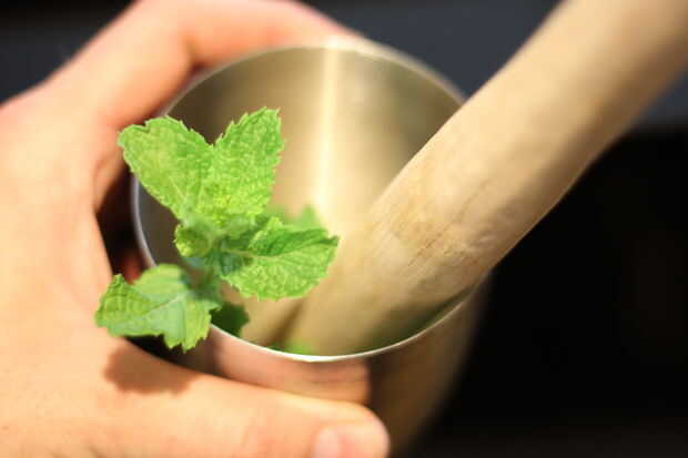 Añadir la menta a la coctelera y lo mezcle. Improvisación es machacando esencialmente la cosa se enturbia. El objeto de salir no debe desintegrar lo que estás lidiando, pero para moretes para arriba por lo que es sabor pueden ser extraído fácilmente por el alcohol. No te preocupes por tener un lío perfectamente limpio, tendrás pequeños pedacitos de hierbabuena flotando sin importar cómo cuidado se encuentre. Si en verdad sientes que debe puede ejecutarlas a través de un colador de malla fina pequeña, pero las probabilidades son que todavía tienes pedacitos muy pequeños de hojas de menta. Dejar. Sean tan pequeñas que no notarán en su boca.