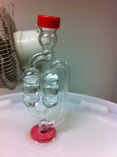 La tapa del estallido en el fermentador asegurándose de que usted tiene una bolsa de aire en él.