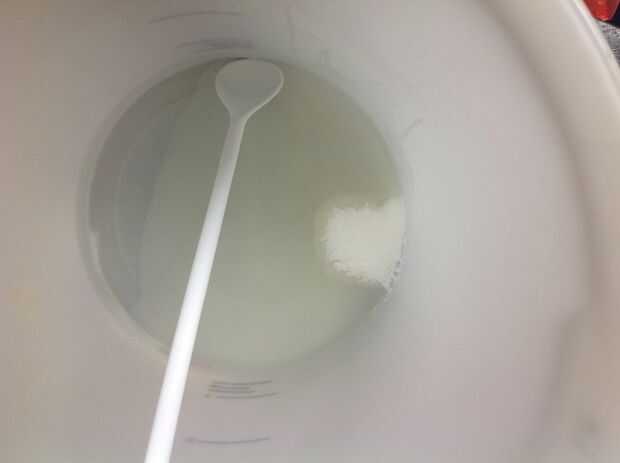 Cuando se haya enfriado a unos 23 grados C espolvorear 50G de levadura en la parte superior y revolver, puede paquetitos de panadero levadura sería puesto al menos 2 en pero puede tomar más tiempo para fermentar.