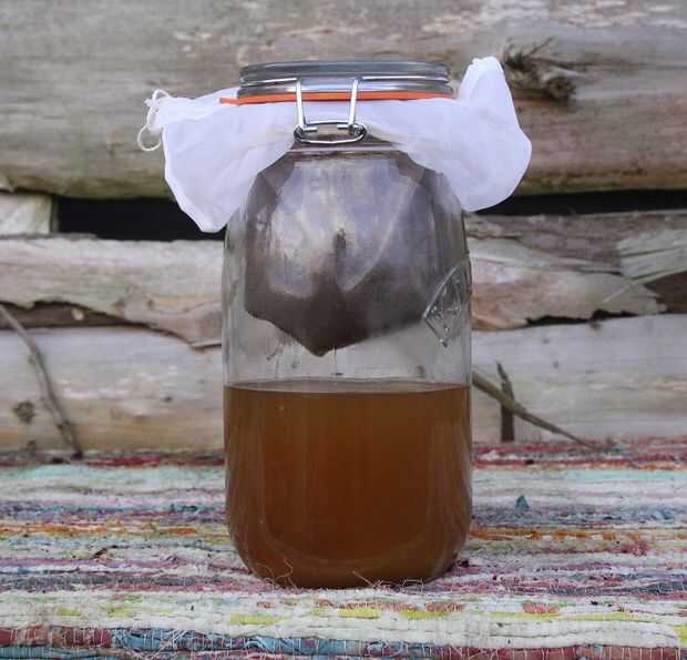 Ahora Vierta la totalidad del lote en el tarro de masón de 3 litros que tiene la bolsa filtra conectada como en la foto de arriba. La bolsa actúa como un filtro que se llevará a cabo la mayoría de los componentes sólidos. La bolsa de filtrar se une al borde de la jarra con bandas de goma de tal manera que forman un bolsillo colgante pequeño. La tapa se puede cerrar aún con un buen sello en el borde. ¿En teoría, este tarro podría quedar luego reposar durante unos 3 días para todas la nubosidad desaparezca en la parte inferior, pero que no es tan rápido es?
