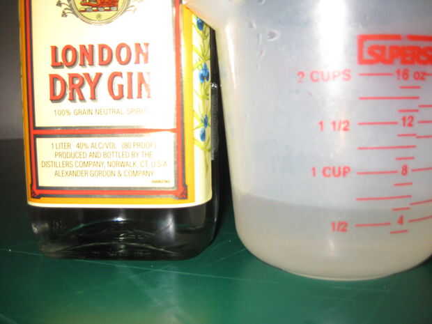 Mientras que el agua/tónica mezcla se calienta a medida 2/3 de taza de gin frío y tónico frío 1/3 taza y apartarlas.