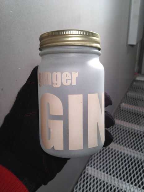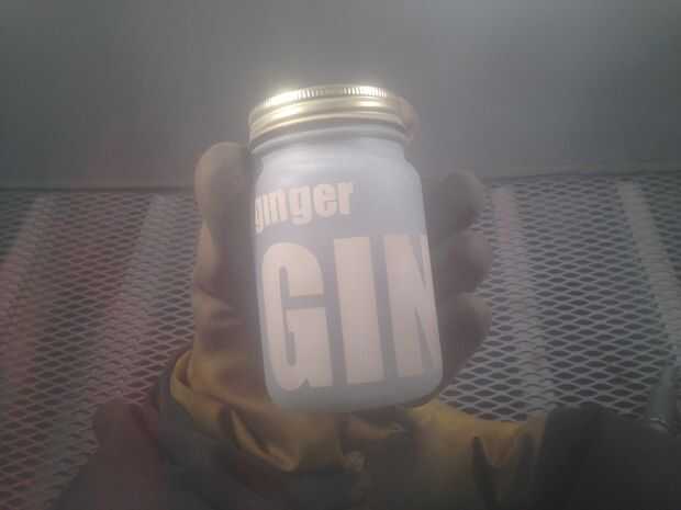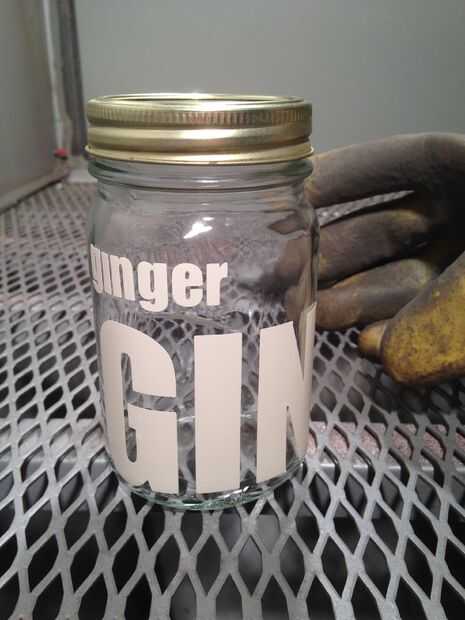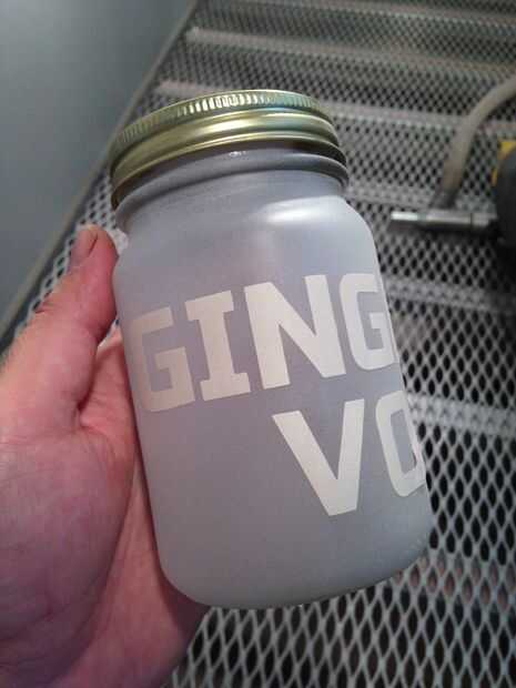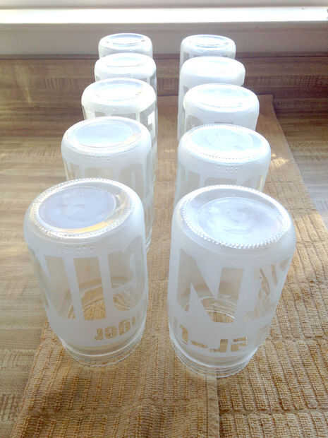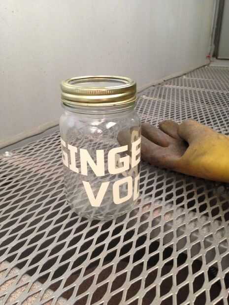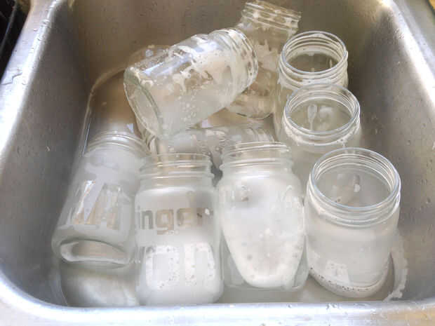 Utilizar el chorro de arena a la helada los tarros de vidrio teniendo cuidado de no arruinar las letras de la etiqueta engomada.