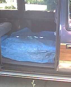 a continuación, colocar una lona. Esta es la voz de la experiencia habla, confía en mí! Aunque la alfombra en el piso de la van no es primo, una lona hace limpiezas * para * mucho más fácil. Simplemente levante las esquinas, doblez, luego punta en un bote de basura. Más barato que aspirar! Ahora es el momento para comenzar a construir la cama.
