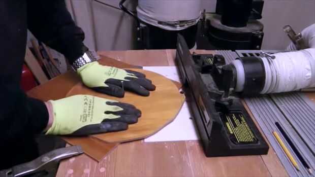 Después clavó el disco en blanco a través de la marca media enciende el router y empuja el disco en el cortador del broca hasta que el cortador se corte a la línea y luego hizo girar el disco en sentido horario.