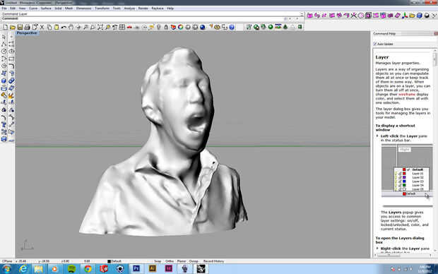 Lección aprendida: Si su modelo tiene un agujero cilíndrico con dimensiones críticas (como el orificio para el altavoz) y el amontonamiento de capas paralelas al cilindro en Make 123D (como este tutorial), el agujero será demasiado pequeño. See imagen 5 (línea rosa representa el agujero resultante para el altavoz). Me descubrió esto cuando estaba montando las capas y llegó a tener que recortar espacio para el altavoz con un X-acto. Trató de exportar el modelo en rodajas de 123D Make a Rhino y luego corte el agujero del altavoz, pero la geometría se convirtió un poco enrollada cuando otra vez en Make 123D. Por lo tanto no hay solución real a partir de ahora.