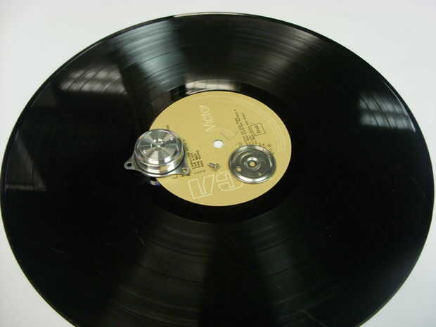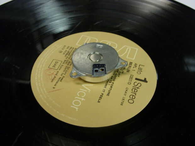 Una placa de vinilo estaría más cerca de la realidad, pero es difícil encontrar un motor de giro para adjuntarlo a. Por suerte he podido sacar la placa del motor de un disco duro y coloque el disco de vinilo en lugar de otro.