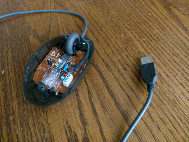 Vaya por delante y desmontar ese ratón.  Generalmente hay unos pequeños tornillos en la parte inferior. Entonces solo debe partirse por la mitad.