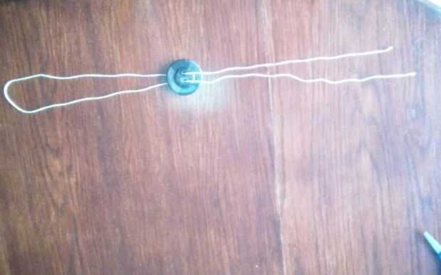 Poner un extremo de la cuerda en un agujero y el otro extremo en el otro agujero.