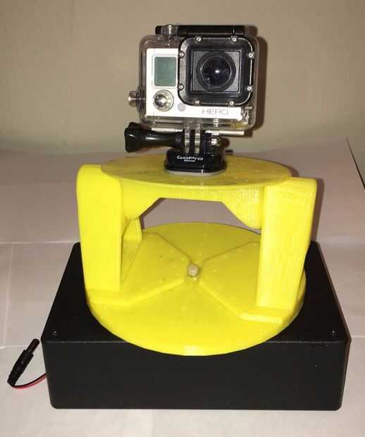 Se trata de una rotación GoPro Panorama montar utilizado para capturar una amplia gama de GoPro videos, fotos y de lapso. El GoPro se asienta sobre un soporte giratorio que es totalmente ajustable. Este dispositivo es controlado por un código de arduino abajo. El código puede manipular totalmente a las necesidades del usuario.