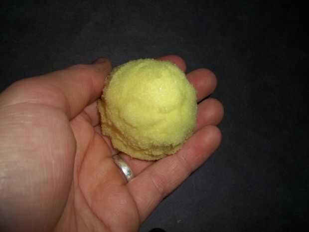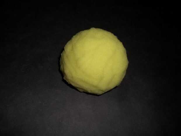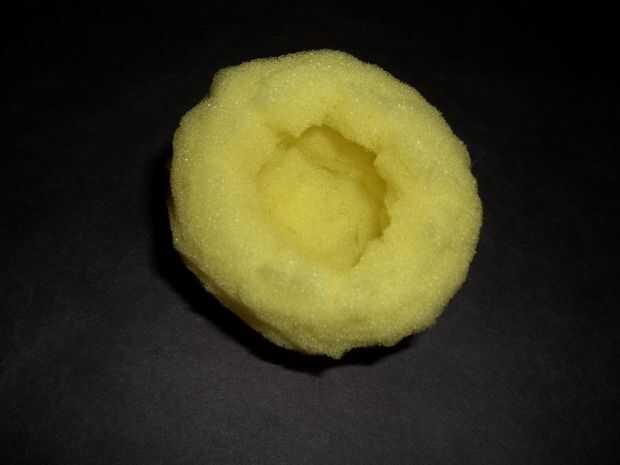 Vuelva la bola de esponja a través del orificio. Debe reducir a aproximadamente la mitad es tamaño original. Este es el principal mecanismo de la trick - cuando la bola se una manera, es grande, otros, pequeños. La razón que esto ocurre es porque hay menos superficie en el interior de la bola de truco que en el exterior, por lo tanto, no tiene ninguna manera de expandir cualquier superior esa superficie, lo que es más pequeño cuando se dio vuelta adentro hacia fuera.