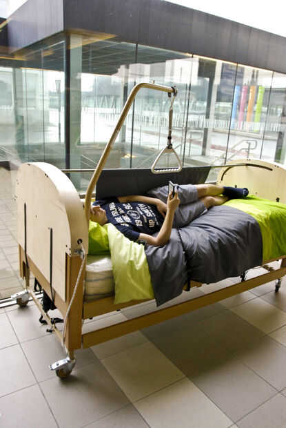 La persona para quien hicimos esto se llama a Sylvie y está paralizada de su basura a sus pies. El dispositivo funciona elevando la cama permitiendo cuerdas tirar en una manta. Esta manta ayuda a la persona al apostar en su flanco. La cama utilizada en este instructable es una cama común encontrada en muchos hospitales y geriátricos. Supuesto, no todas las camas son iguales por lo que podrían tener unos pequeños ajustes para que se ajuste.
