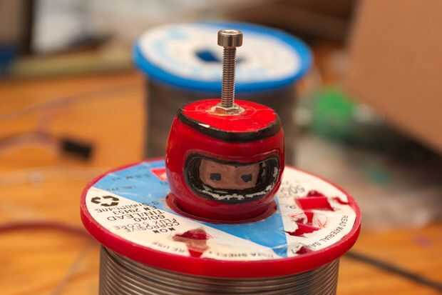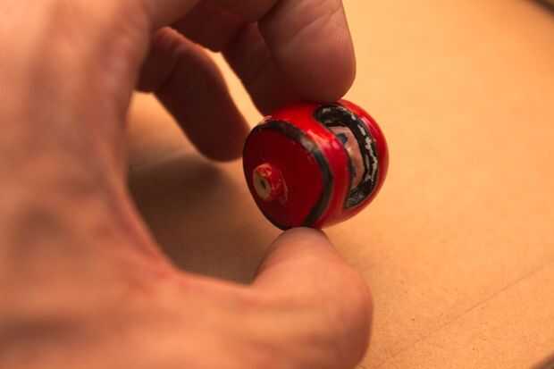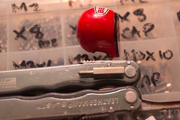 Puesto que el rodamiento en el cuello se utiliza el espacio donde el muñón del cuello solía ir, lo afeitó con un cuchillo. Luego perforé un agujero en la cabeza. Puesto que el plástico era un poco vieja y potencialmente frágiles, sólo lentamente giré los pedacitos de taladro de mano, cada vez aumentar a un tamaño más grande, hasta que el agujero fue lo suficientemente grande como para poner en un separador hexagonal.