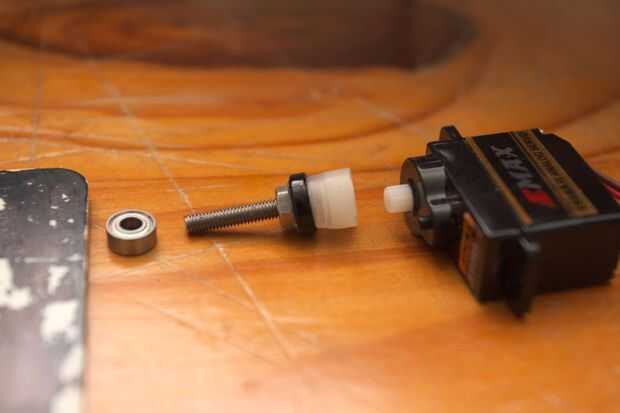 Simplemente ajustaron el centro de un cuerno del servo al extremo de un tornillo. Maltratados ambas piezas para asegurarse de que el epoxi tenía algo que cumplir. Esto fue lo que me pasó en el final, tiene la ventaja de ser más compacto.