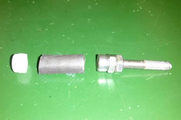 Un pedazo corto de tubo de silicona es estiramiento sobre la cabeza del tornillo y el otro extremo va sobre un cuerno del servo que tiene brazos había tajado apagado, bridas de mantienen todo en su lugar. Este método tiene la ventaja de que el tubo de silicona es flexoble un poco, así que si el servo no está perfectamente alineado, no es ningún problema.