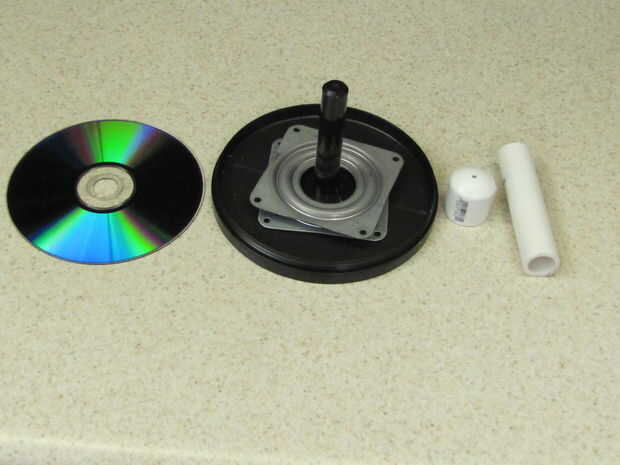 Coloque un CD (o en este caso DVD) sobre el eje y dejar descansar en la parte superior el conjunto de cojinete.
