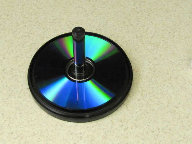cuando pensaba en usando un contenedor de CD que tiene un buit-en el eje vertical. Obras beartifully. Aquí es lo que necesitarás:
