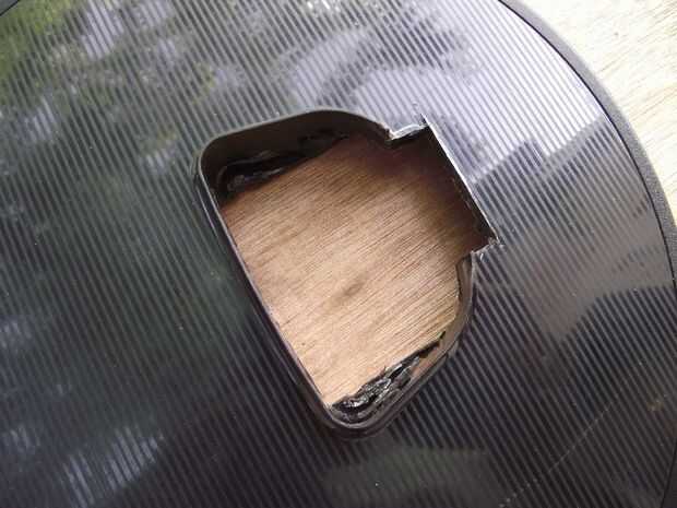 Lo que hice fue vaciar el espacio en la placa base donde cupiera mi placa de soporte de aluminio en. Esto fue hecha con una rueda de corte de metal en una amoladora de mano y corte las costillas con un cuchillo (una Dremel haría un mejor trabajo - cualquier persona que se siente como que me se por favor ver mi lista de deseos Amazon!)