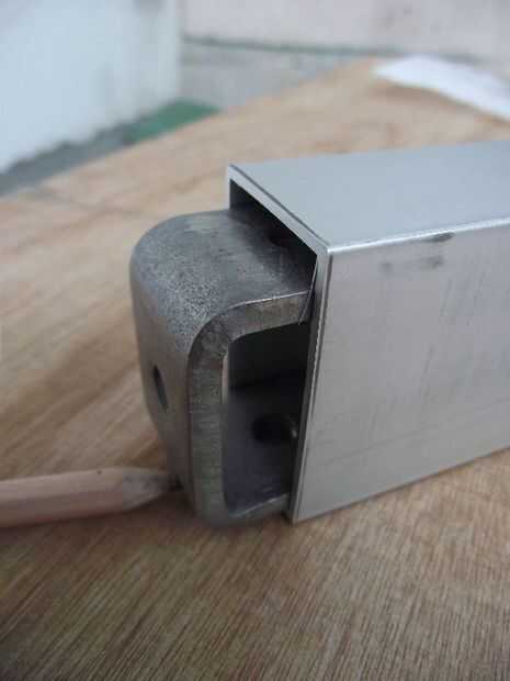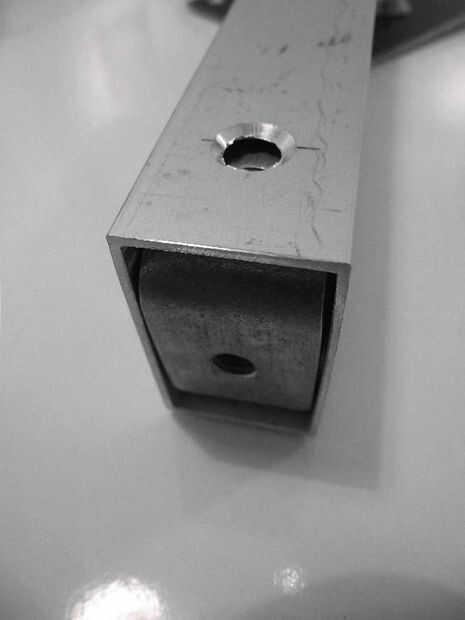 El soporte inferior montado libremente dentro de la columna así que espaciados con arandelas al insertar los tornillos. Marque la ubicación y taladrar los agujeros para asegurar que el soporte fue 1-2mm (3/64 pulgada) dentro de la base de la columna; Esto permitiría el tornillo inferior cualquier tensar cuando se apretó. Los agujeros en la columna deben avellanados con cuidado pues el material es fino.