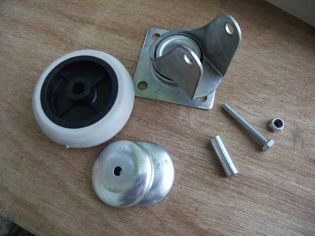 Salvo el eje central de la rueda y acortado un poco por pulir para caber en la columna. Esto evita que la columna de ser aplastado cuando usted apriete el tornillo de fijación. Marque y taladre en la columna de cada lado en lugar de intentar hacer a un lado - usted quiere los agujeros a la línea para arriba perfectamente. No fije la placa de la rueda a la columna, sin embargo, lo haremos más adelante.