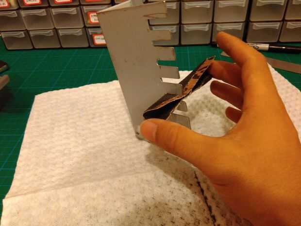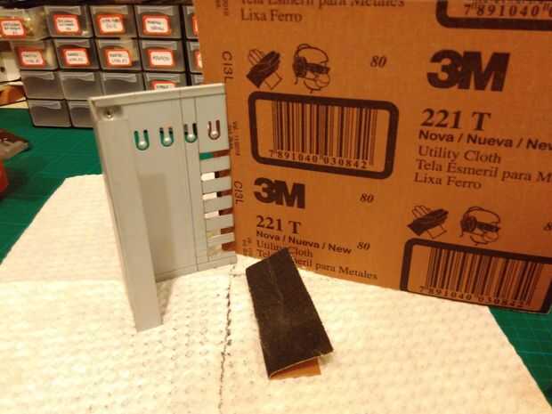 Me resulta más fácil cortar una sección del papel de lija y rodar como un cilindro y una vez que haces eso simplemente puede empujar en las ranuras y comenzar a pulir con un movimiento de arriba a abajo. Al principio el papel de lija es rígido y conseguís un buen lijado pero finalmente las grietas del papel y es mejor cortar otro.