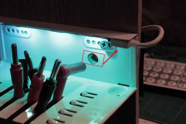 Decidí pasar el cable por detrás de la maniquí Junta pero en caso de que usted quiere conseguir un resultado aún más suave, podría intentar abrir ese círculo (dentro del rectángulo rojo) para que tenga suficiente espacio para el cable ir a través. Obviamente hacer eso antes de pintar.