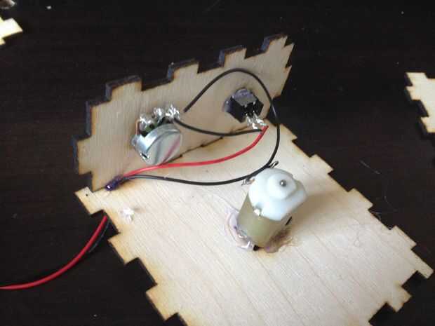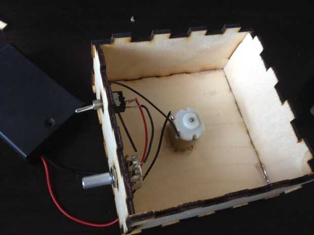 Montar el láser de corte de caja. Debe ser fácil de montar el cuadro, las piezas encajan justo pero probablemente tendrás que pegarlos juntos. El paquete de baterías probablemente no cabrá en la caja así que acaben los cables a través de una de las ranuras en la caja.