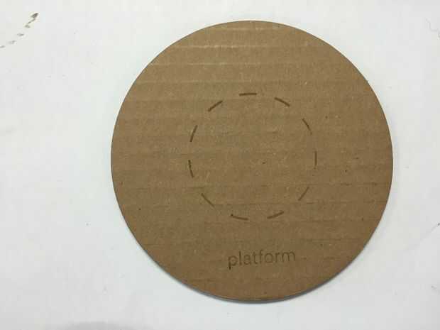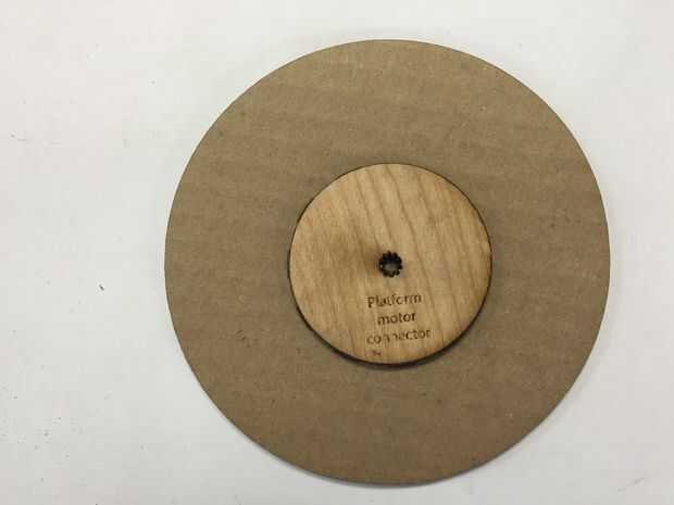3. Entregar la plataforma de modo que el disco de madera en la parte inferior y colóquela en el engranaje del motor. Usted puede tener a mover la plataforma para obtener el agujero para alinear con el equipo.