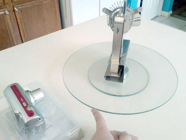 Coloque el objeto sobre la bandeja giratoria y colocar la cámara para que el objeto esté centrado, y el borde delantero de la bandeja giratoria está fuera de marco. Usted debe ser capaz de alcanzar y tocar el borde de la bandeja giratoria sin su mano aparece en cámara.